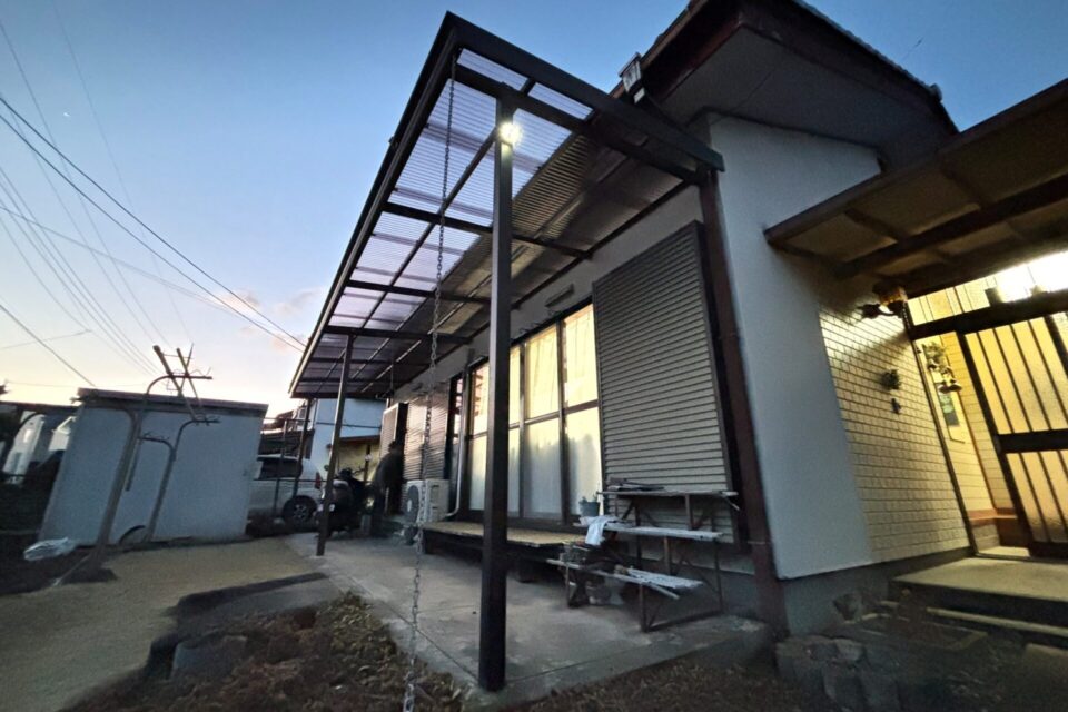 S様より、テラスの波板が一枚剥がれたので補修して欲しいとのご相談を受けました。当初は波板一枚の補修のみの予定で施工に伺ったのですが、S様より全部交換して欲しいとのご依頼に変わりました!!材料を持ち合わせていなかったので再度、作業に伺いました!!
