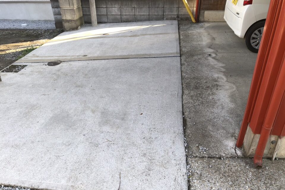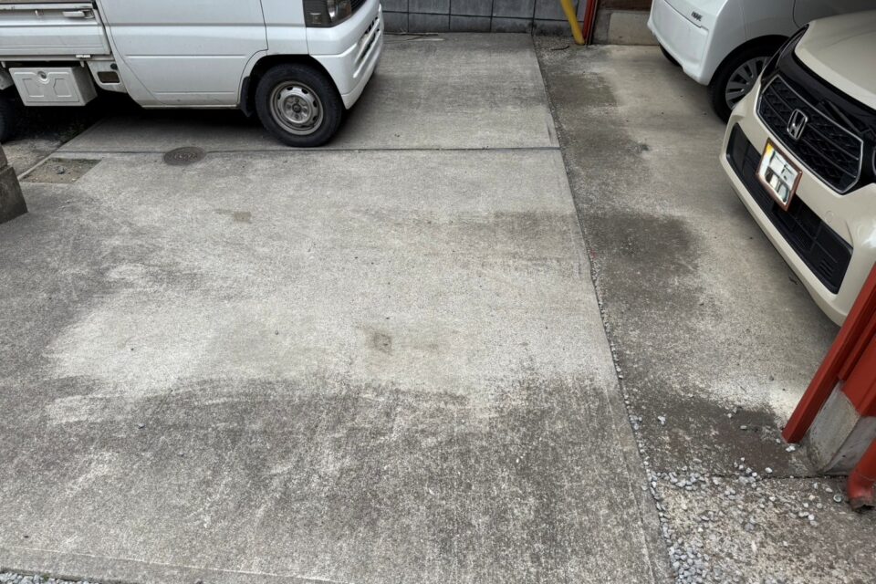 コンクリートの汚れは、落ちにくくて掃除も大変ですよね..。高圧洗浄を用いて、コンクリートを綺麗にすることが出来ました!