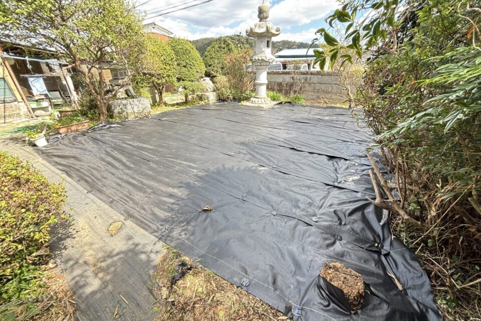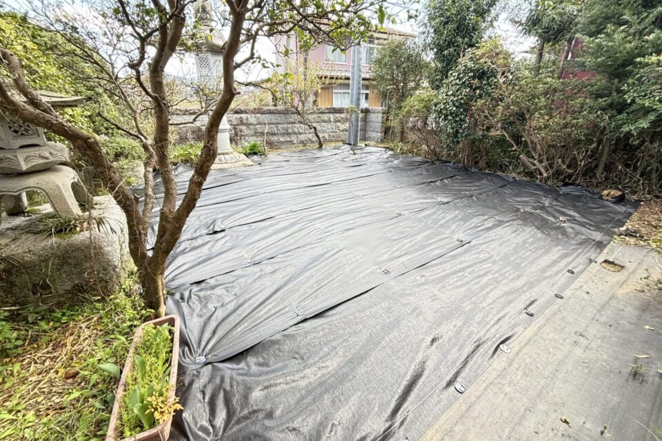 M様より、お庭を草をなくしたいとのご相談を頂きました。広い敷地だと、雑草などの管理をするのは大変ですよね..。除草をしたうえで、防草シートを設置することで、今後も綺麗なお庭の状態を保つことが出来るようになりました!