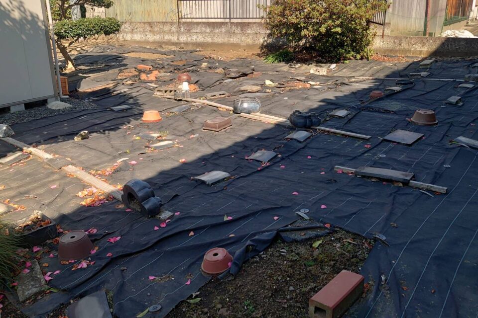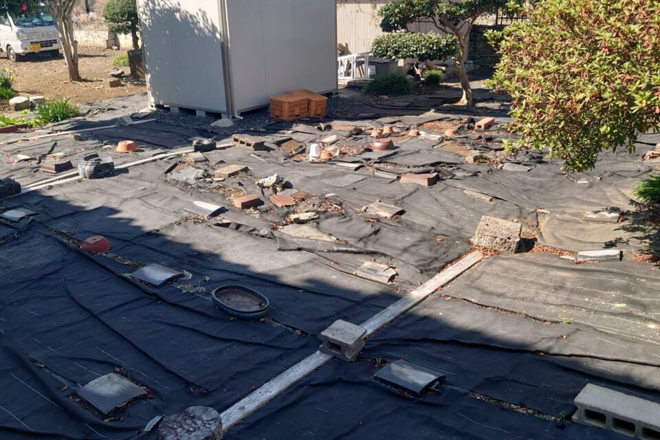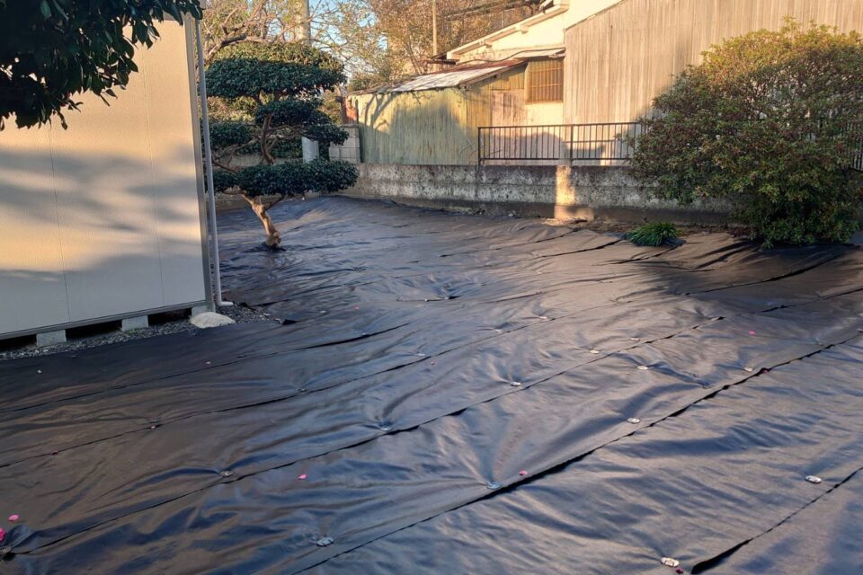 A様邸にて、防草シートの設置をさせていただきました!