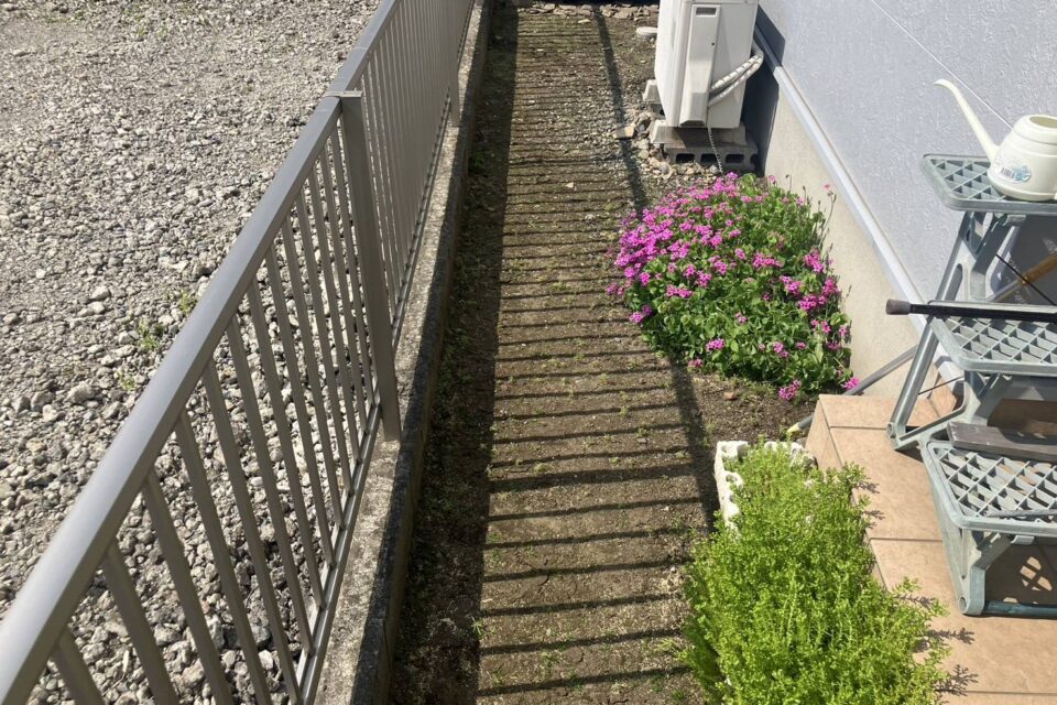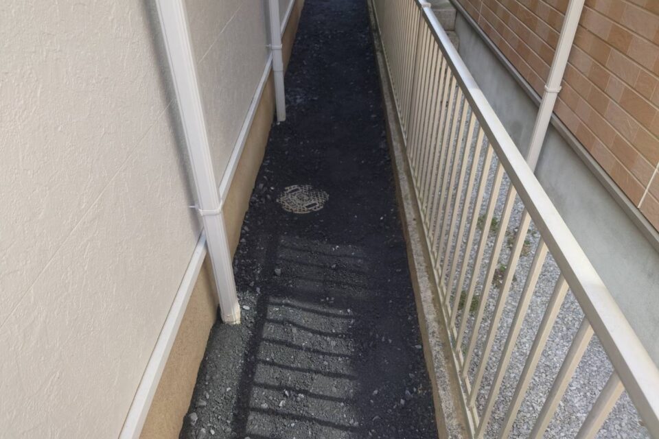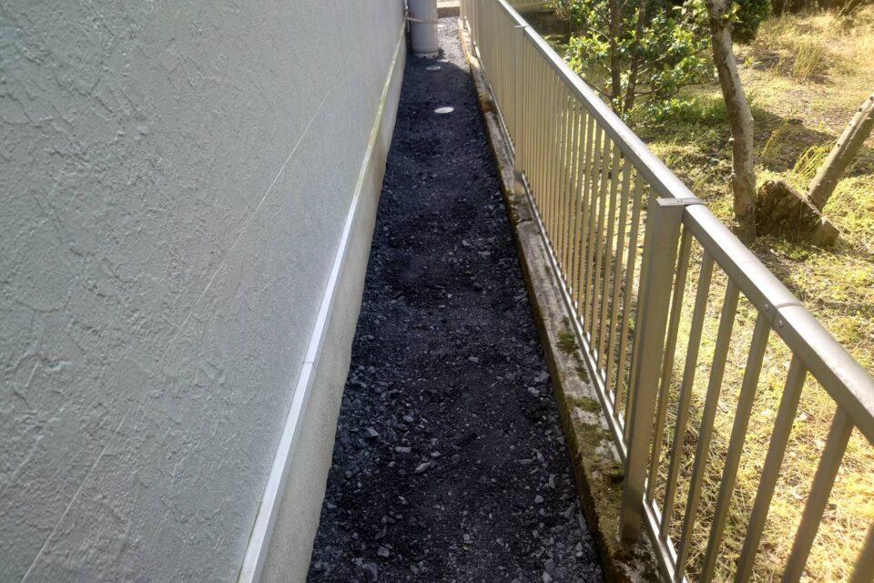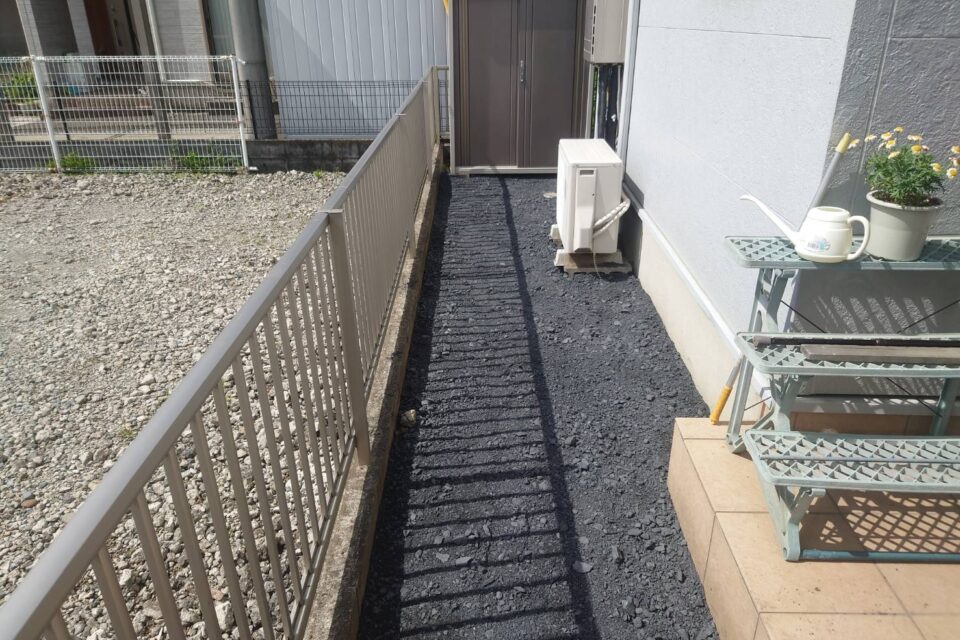 O様より、砂利を設置したいとのご相談を頂きました。担当が現場に訪問し、面積などを把握した上で作業を進行しました!周囲に砂利を設置することで、安心してお過ごしいただけるようになりました!