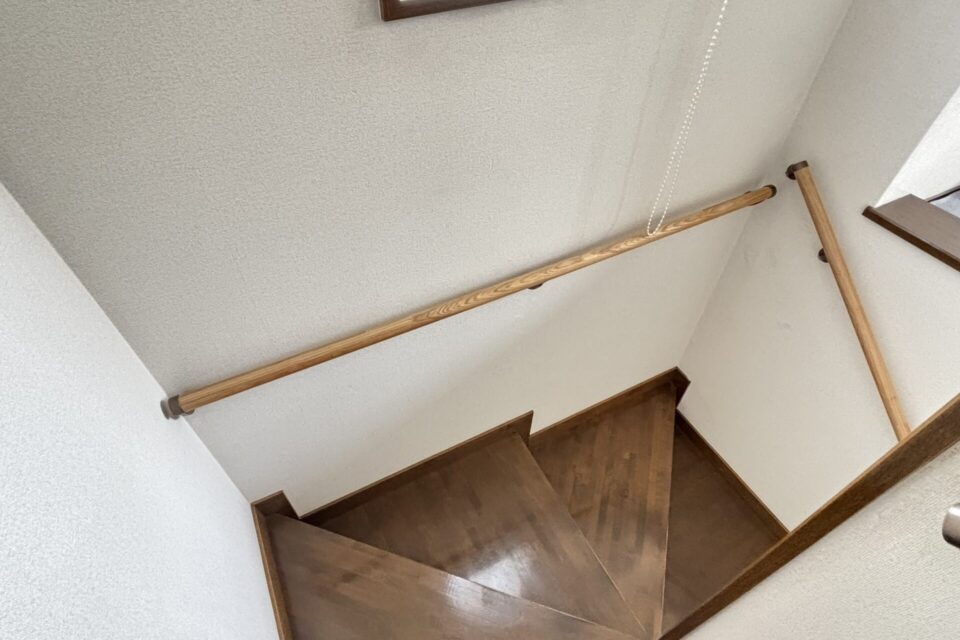 N様より、階段に手すりを取り付けたいとのご相談を頂きました。担当が現場に訪問させていただき、設置場所の状況を把握した上で、作業をさせていただきました!手すりを設置することで、安心してお過ごしいただけるようになりました!