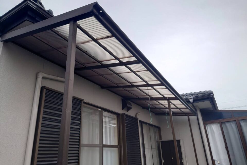 Y様より、波板を交換したいとのご相談を頂きました。担当が現場に訪問し、波板の適格サイズや周囲の環境などを把握した上で、作業を完了させました!波板を新しく張り替えることで、雨天時も安心してお過ごしいただけるようになりました!