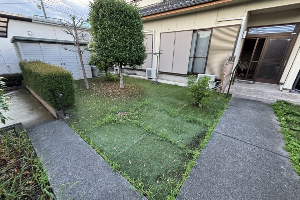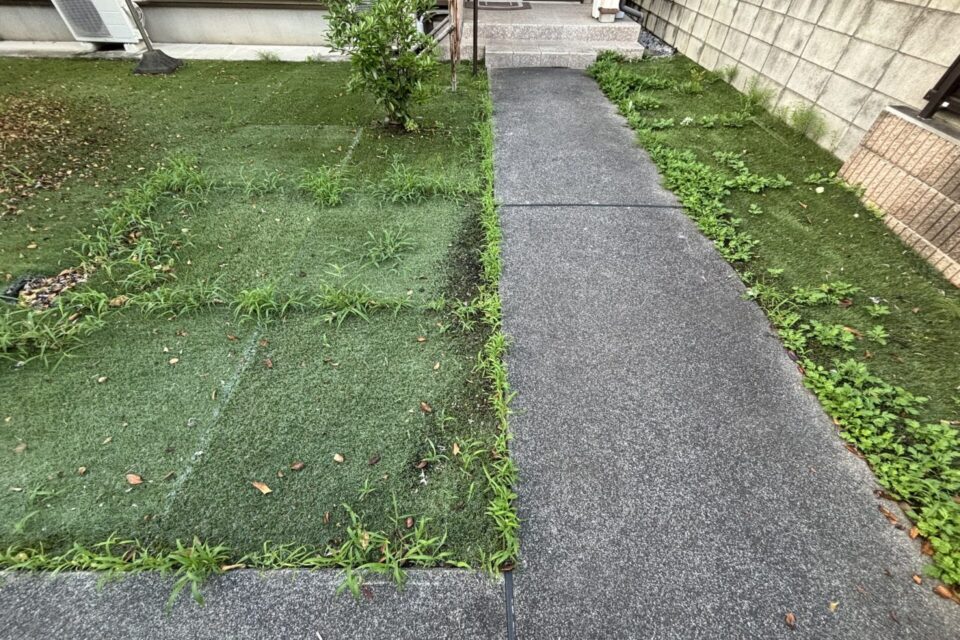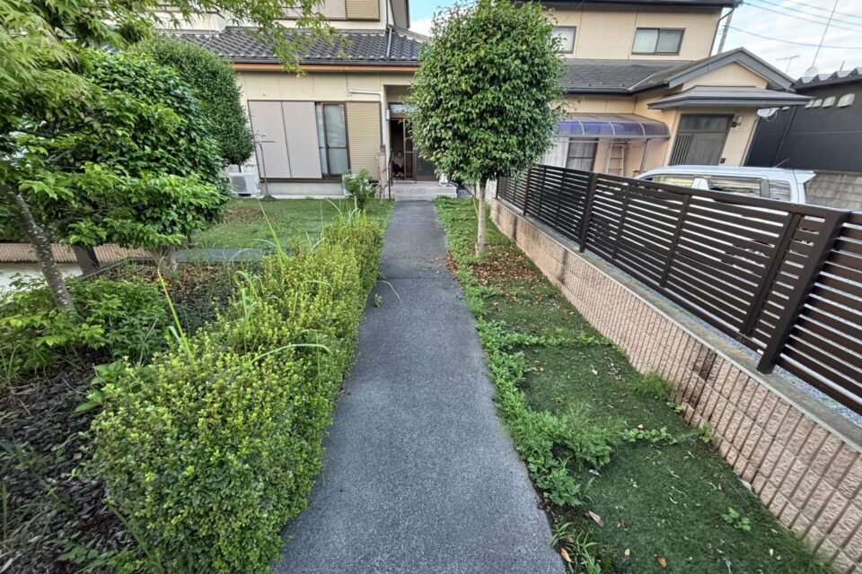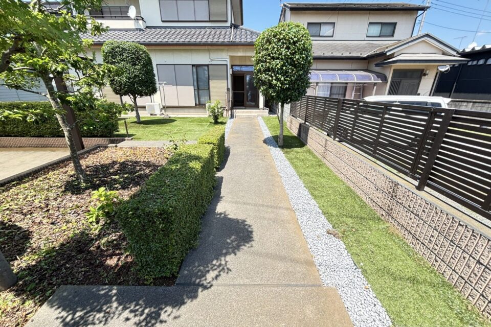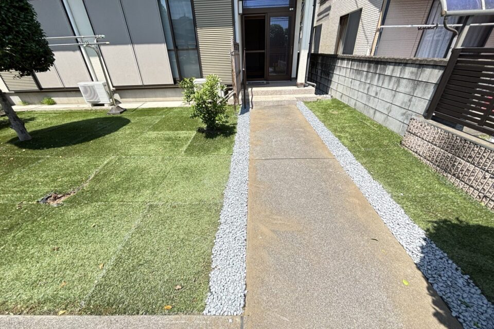 H様より、お庭の草を整えたいとのご相談を頂きました。担当が現場に訪問させていただき、丁寧に草を除去したうえで剪定をすることで、見た目が綺麗にスッキリとしました!また防草シートの上に砂利を敷くことで、雑草対策もバッチリです!
