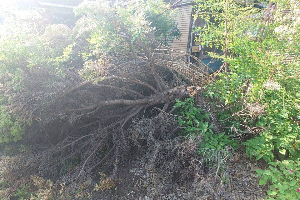 O様より、お庭の木が倒れてしまった為、処分したいとのご相談を頂きました。担当が現場に訪問させていただき、周囲の安全を確保した上で、処分することでお悩みを解決しました!