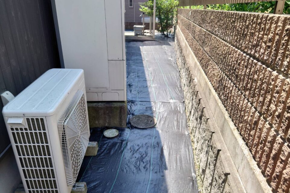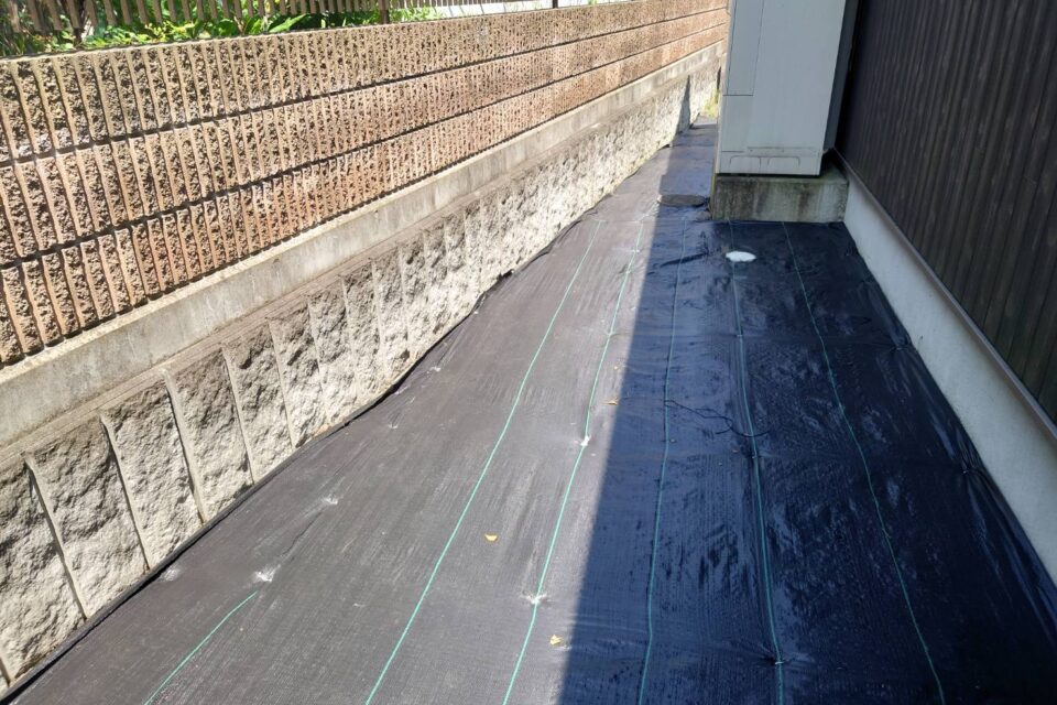 O様より、防草シートの設置のご依頼を頂きました。担当が現場に訪問させていただき、丁寧に設置することで、快適にお過ごしいただけるようになりました!