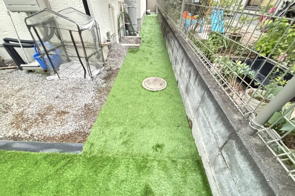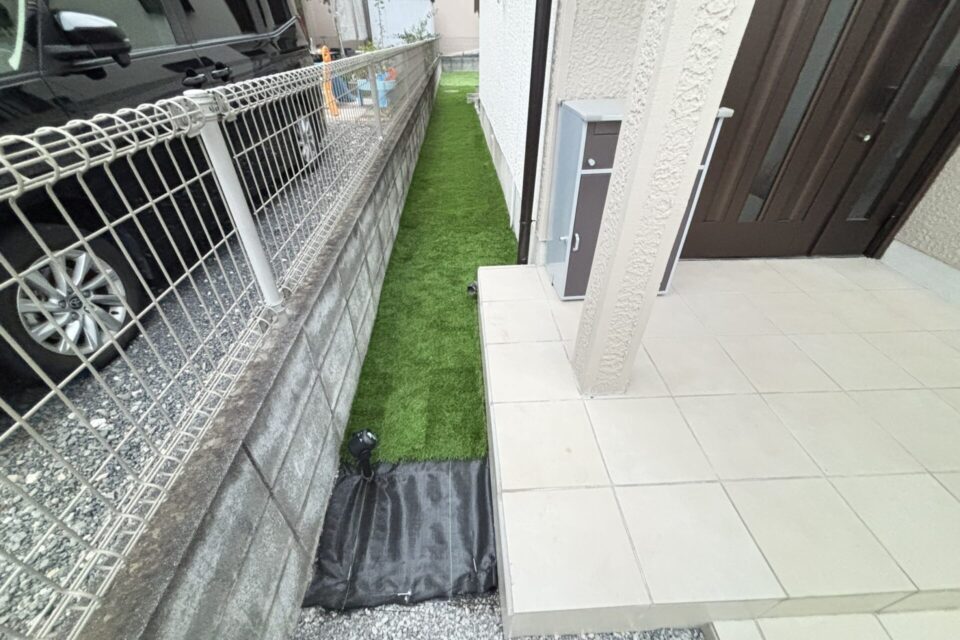 S様より、お庭に芝を設置したいとのご相談を頂きました。芝の下から雑草などが生えて凹凸が出来るのを防ぐために、防草シートを設置し、その後芝を設置することで、より綺麗なお庭になりました!