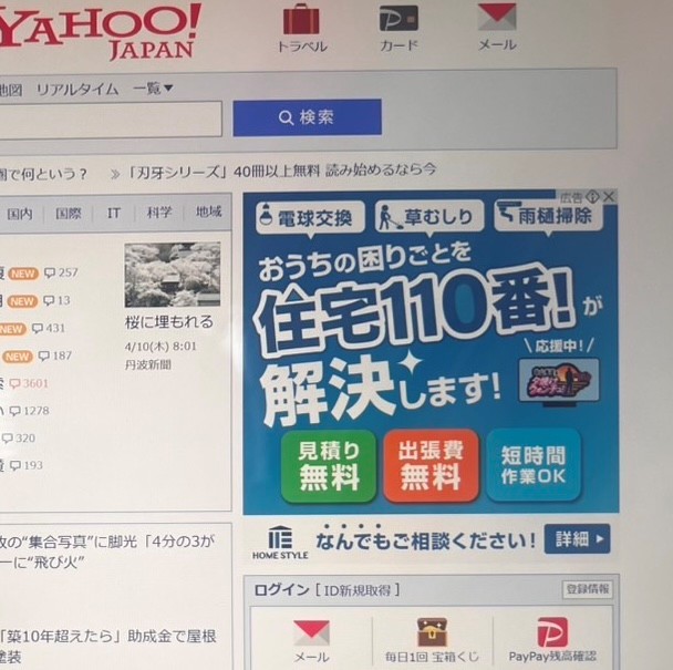 この度、Yahoo!JAPANや提携サイトに「住宅110番!」のバナーを掲載させて頂く事になりました!!Yahoo!広告は日本最大級のポータルサイトなのでお客様の中でも目にすることがあるかと思います☺