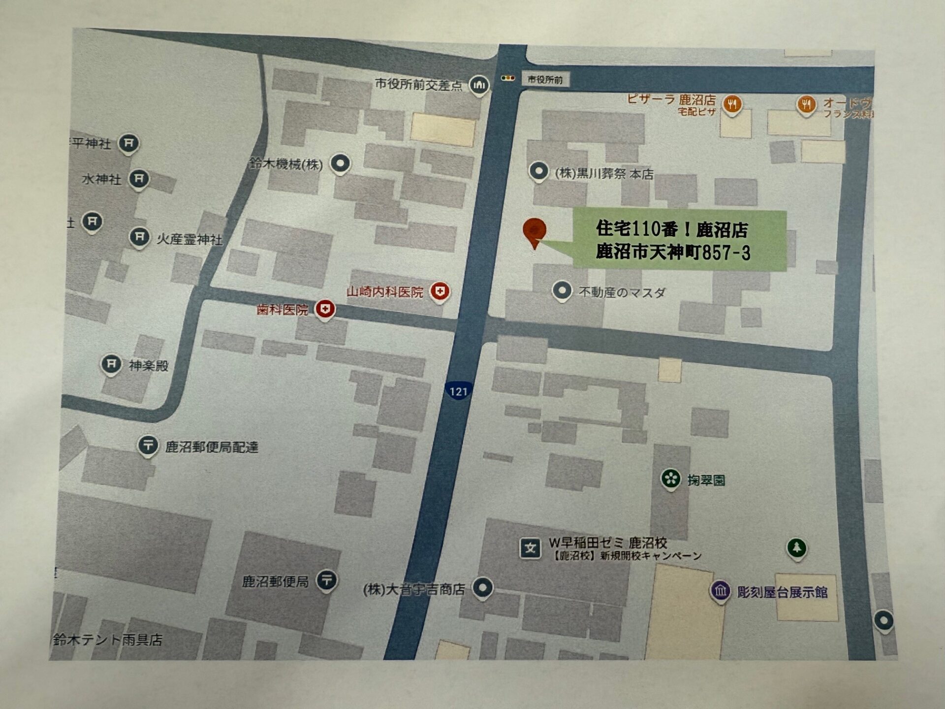 場所は、栃木県鹿沼市天神町 1857-3 国道121号線沿い、不動産の増田様となり、道路を挟んで斜め前は山﨑内科医院様です!!