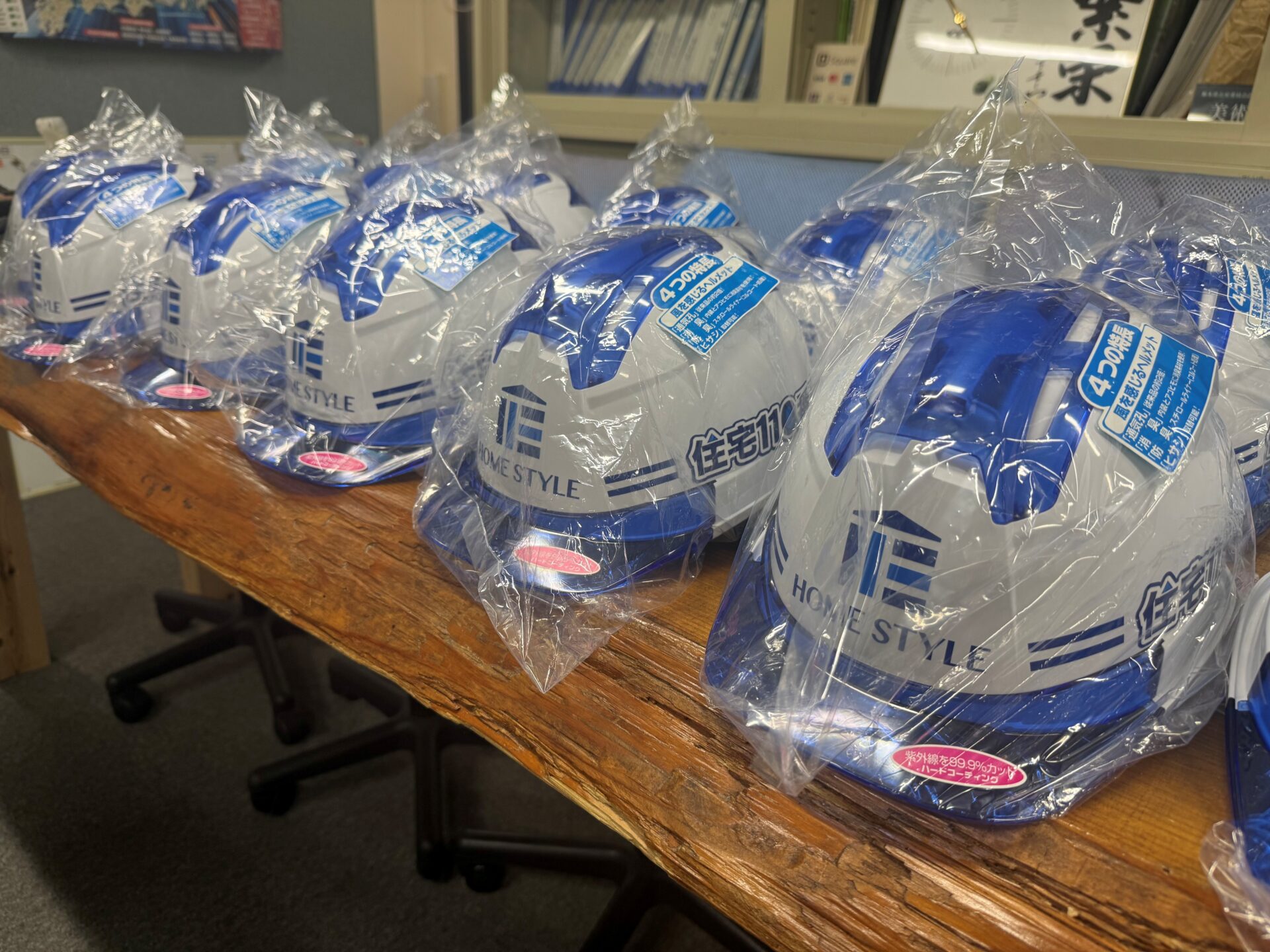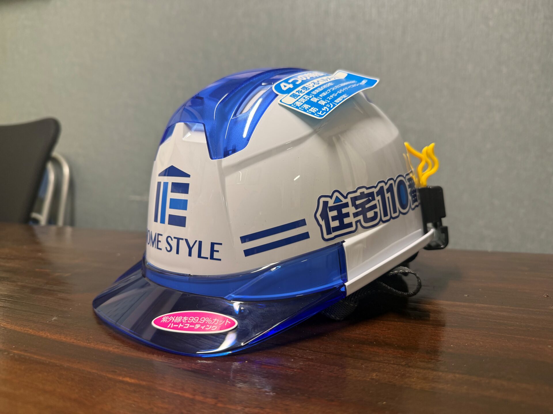 ヘルメットに会社のロゴを入れることにより社内全体での安全意識を高め仕事に取り組んで行ければと思います。